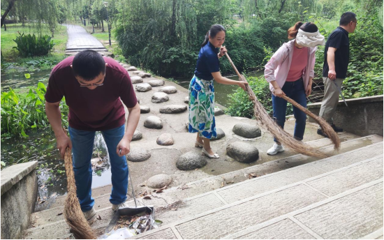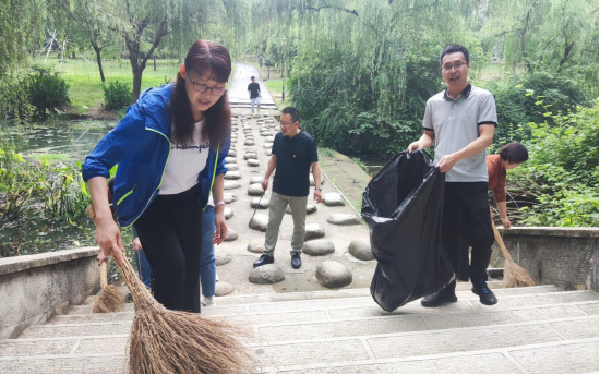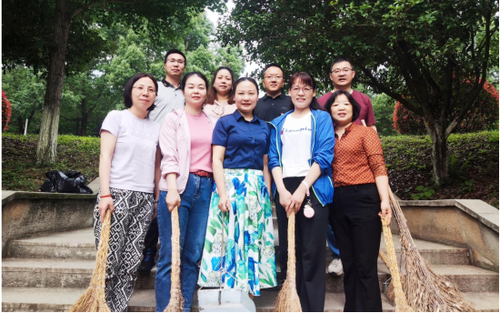 为响应咸宁市创建全国文明城市号召,根据学校机关党委统一部署,2022年5月27日,教务处开展创文清扫活动,整治校园环境卫生,创造宜居校园环境。清早,教务处全体人员在处长鲍翠玉同志带领下,在责任区内进行创文大清扫。活动中,大家发扬不怕脏、不怕累的精神,用扫帚、火钳等工具对责任区内道路、台阶、草坪、卫生死角等区域进行清理。