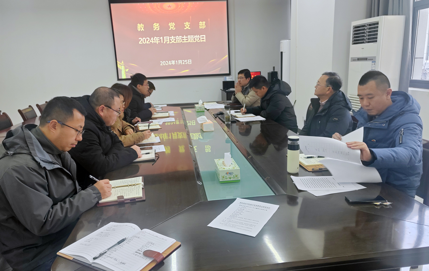 1月25日下午,教务支部在教务处会议室开展2024年1月主题党日活动,活动由支部书记张利平主持,全体党员、入党积极分子参加学习并交流了学习心得。